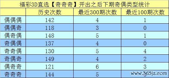 上期开出奖号551,其奇偶类型为:奇奇奇,该类型组合历史上开出了1090期,最近100期开出了15期。